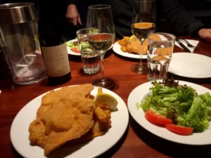 The ‘Christkindl markets’ are fantastic and getting in the festive mood, we jumped onto the Big Wheel – oh no, it was even colder up there! (see my photo & faces!). So, we needed hot Glühwein to warm us up! And for dinner we tucked into a real Viennese Schnitzel again before going to the famous Café Sacher in search of the delicious ‘Sachetorte’ for dessert.
